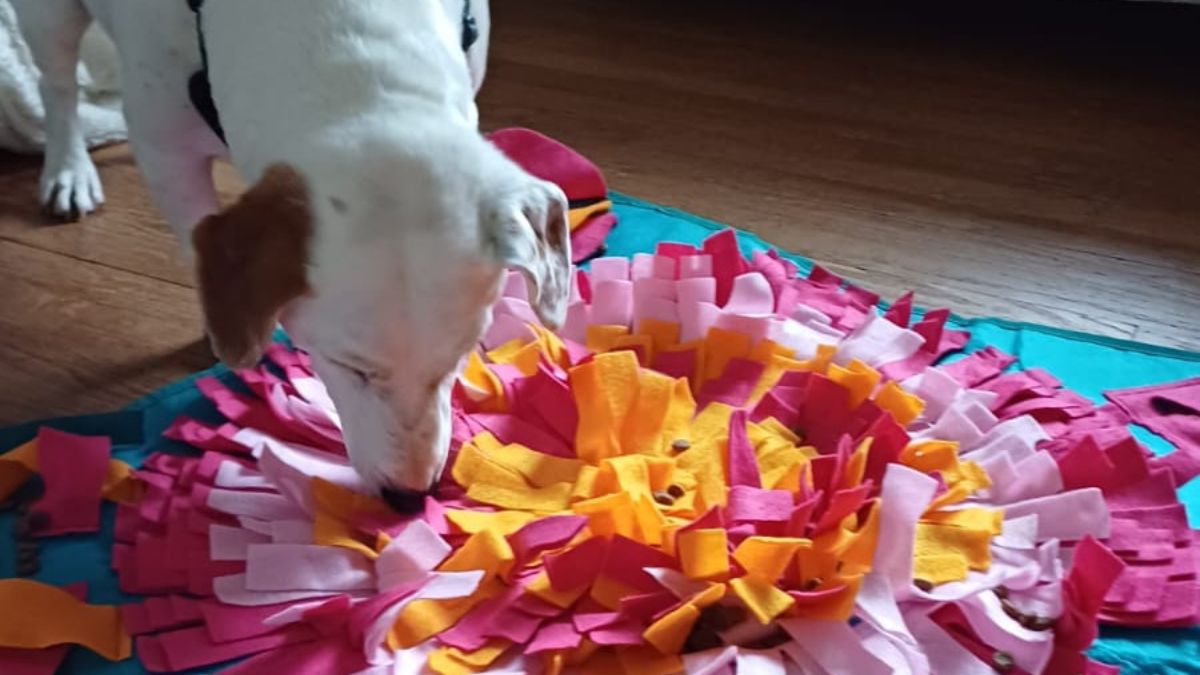 Sniffing is one of the most powerful natural calming tools. A snuffle mat turns mealtime into a calming foraging game.